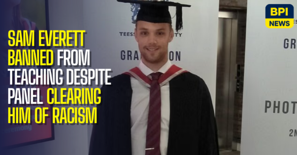 A PE teacher has been banned from the classroom despite an independent panel clearing him of racism and recommending he should be allowed to continue teaching. Sam Everett, 22, who …