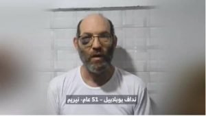 Al-Qassam Brigades, the armed wing of Hamas, released a video showing Nadav Popplewell, a 51-year-old man held hostage in Gaza. The 11-second video features Popplewell speaking, with a message in Arabic and Hebrew superimposed that reads: “Time is running out. Your government is lying.”