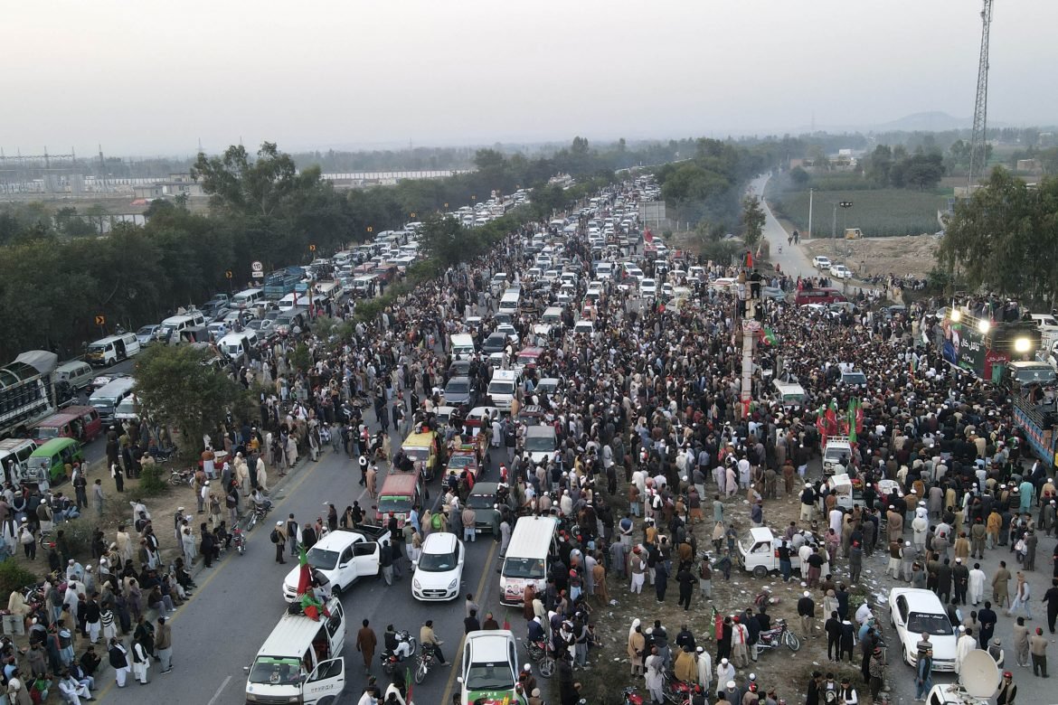 Bushra Bibi, released on bail last month in a case linked to the alleged illegal sale of state gifts, is addressing rallies for the first time, injecting new energy into a movement seen by some as fatigued from constant demonstrations. Addressing the convoy 50km from Islamabad, she declared, “We will not end this march until Khan is released.”
