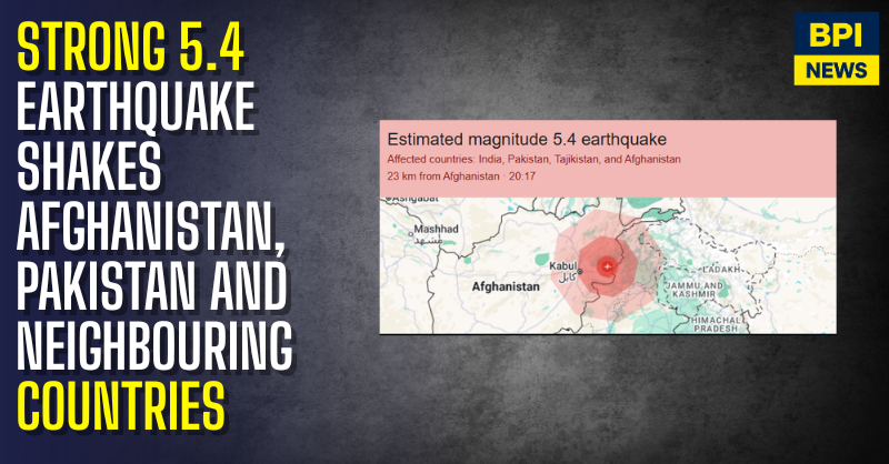 A 5.4 magnitude earthquake struck close to Afghanistan on Sunday evening, with tremors widely felt in neighbouring countries including Pakistan, India, and Tajikistan.