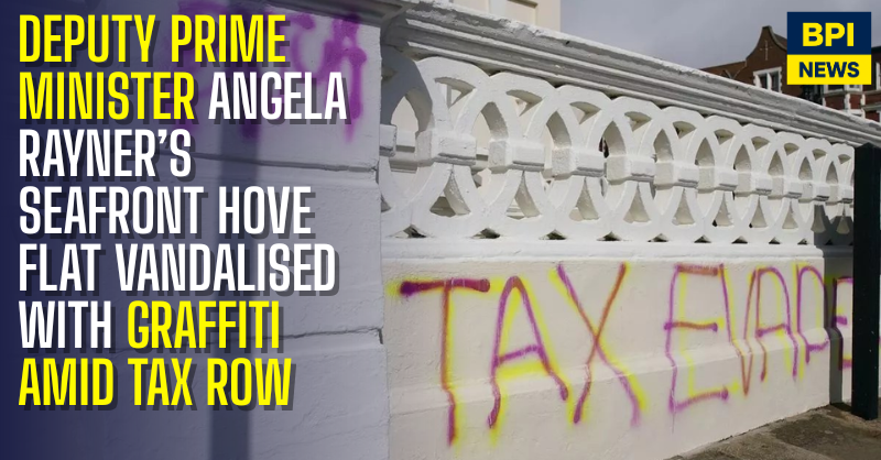 Deputy Prime Minister Angela Rayner’s seafront flat in Hove has been vandalised overnight, with offensive graffiti daubed across its walls, hoardings and pavement.