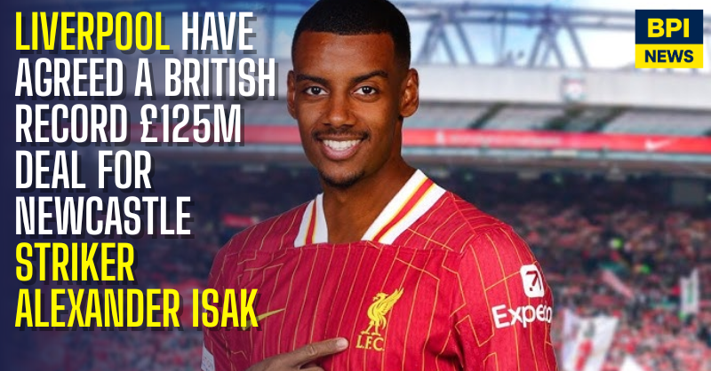 Liverpool have agreed a British record £125m fee with Newcastle United for striker Alexander Isak, in one of the most high-profile transfers of the summer window. Sources suggest the deal could rise to £130m with add-ons, surpassing Chelsea’s £107m signing of Enzo Fernandez in 2023.