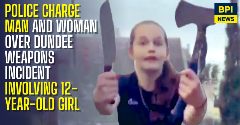 Police Scotland have charged a man and a woman following an incident in Dundee where a 12-year-old girl was allegedly filmed brandishing weapons in the street.