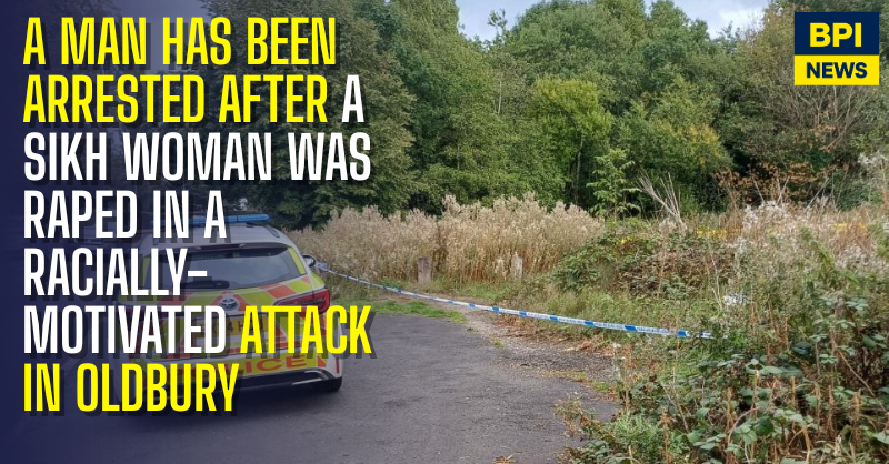 A man has been arrested after a Sikh woman in her 20s was raped in a racially-motivated attack in Oldbury.