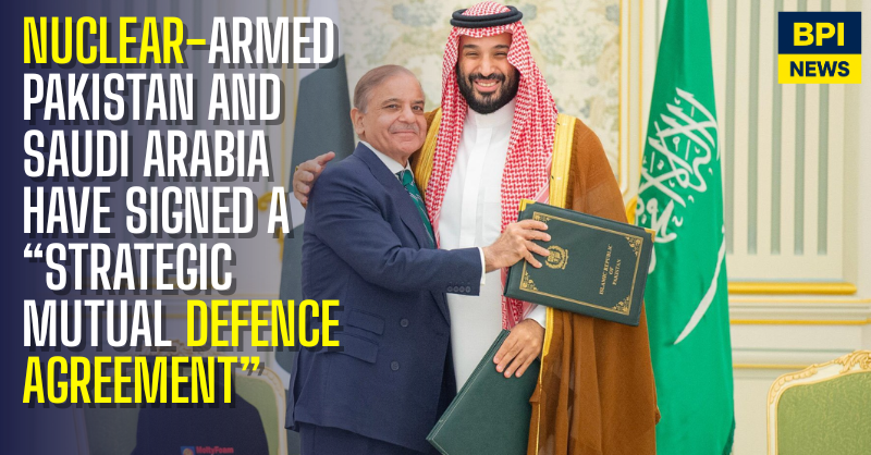 Nuclear-armed Pakistan and Saudi Arabia have signed a “Strategic Mutual Defence Agreement” in Riyadh, committing that any aggression against either country will be treated as an act of aggression against both.