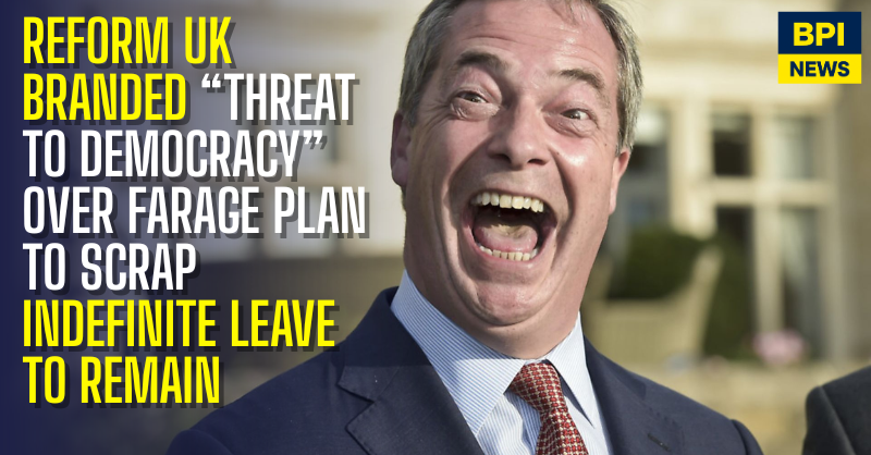 Reform UK has been accused of posing a “threat to democracy” after Nigel Farage pledged to abolish indefinite leave to remain (ILR) in the UK and apply the policy retrospectively to migrants who already hold the status.