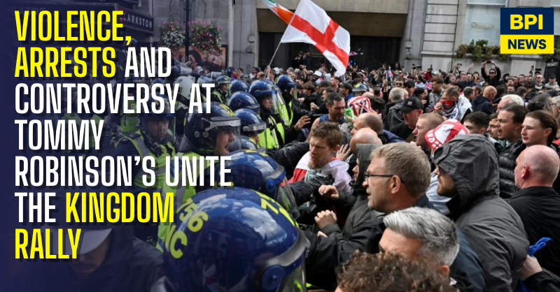 Tommy Robinson’s Unite the Kingdom rally drew more than 100,000 supporters into central London on Saturday, in one of the largest far-right demonstrations seen in the UK in recent years. An estimated 5,000 counter-protesters, organised by Stand Up To Racism, gathered nearby.
