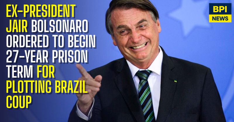 Brazil’s former president Jair Bolsonaro has been ordered to begin serving a 27-year prison sentence after being convicted of orchestrating a coup attempt to block his successor, Luiz Inácio Lula da Silva, from assuming power.