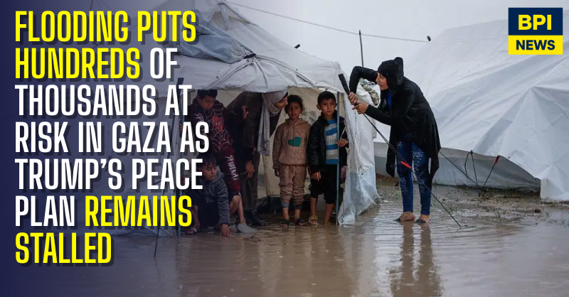 The UN has warned that more than 800,000 people are vulnerable to flooding after storms battered the Strip this week. Several structures collapsed under the strain of rising water levels, deepening the humanitarian pressure on residents already displaced by the conflict.