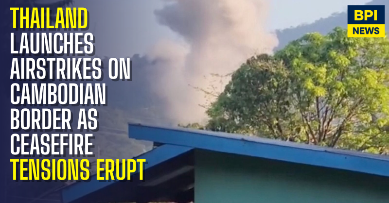 Thai army spokesperson Major General Winthai Suvaree said Cambodian troops opened fire into Thai territory, killing one Thai soldier and injuring eight others. In response, he confirmed that Thai aircraft struck multiple military positions to “suppress Cambodian supporting fire attacks”.
