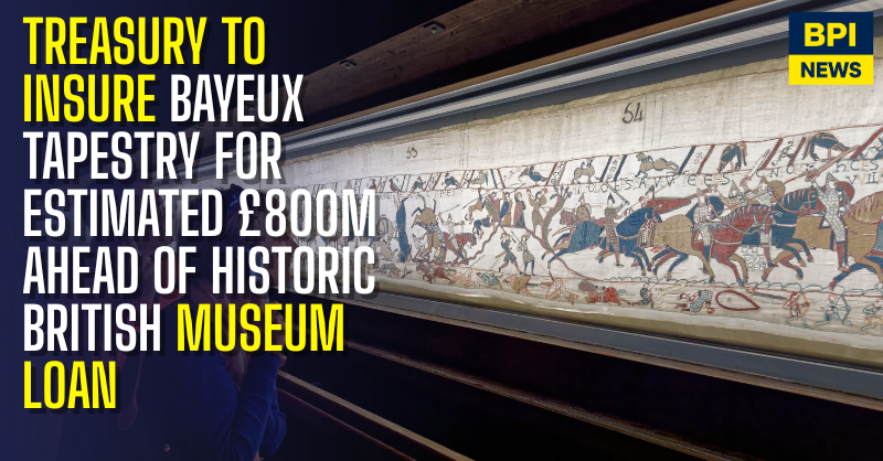 The 70-metre embroidery, which depicts the 1066 Norman conquest, will travel from France to London under the Government Indemnity Scheme (GIS), which protects cultural loans against loss or damage without requiring costly commercial insurance.