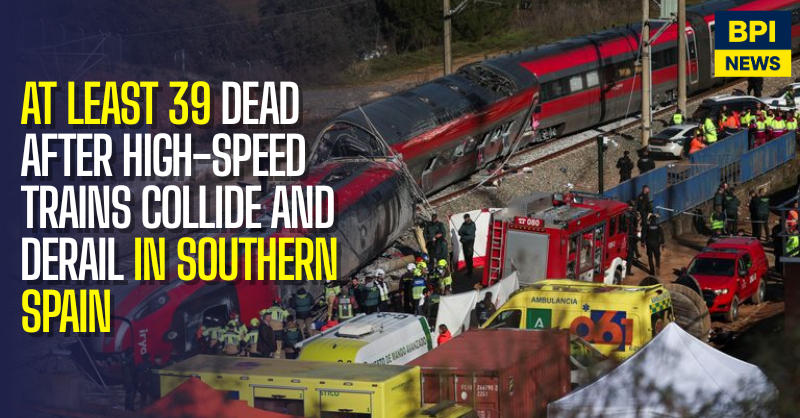 At least 39 people have been killed and dozens more injured after two high-speed trains collided and derailed near the municipality of Adamuz in Spain’s Córdoba province, in one of the country’s deadliest rail disasters in recent years.