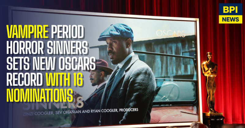 The vampire period horror film Sinners has set a new Academy Awards record after receiving 16 nominations, the most ever for a single film.