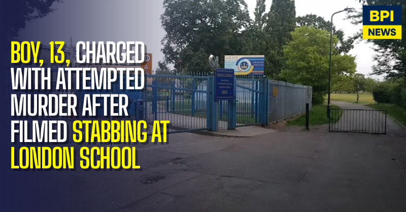 A 13-year-old boy has been charged with attempted murder following a stabbing at Kingsbury High School in north-west London, where the attack was allegedly filmed on his mobile phone.