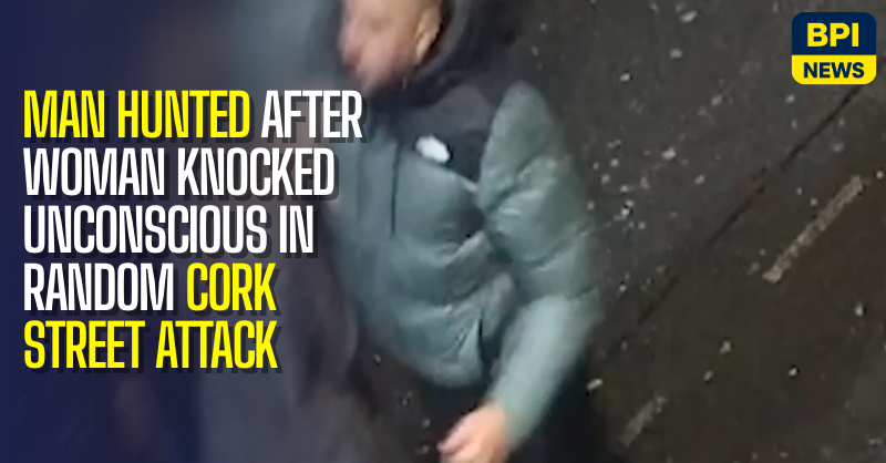 A man is being sought by Gardaí after a woman was knocked unconscious in what investigators have described as a serious and unprovoked assault in Cork city centre.