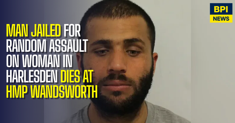 A man who was jailed for repeatedly attacking a woman in a random street assault in north-west London has died in prison, it has emerged.
