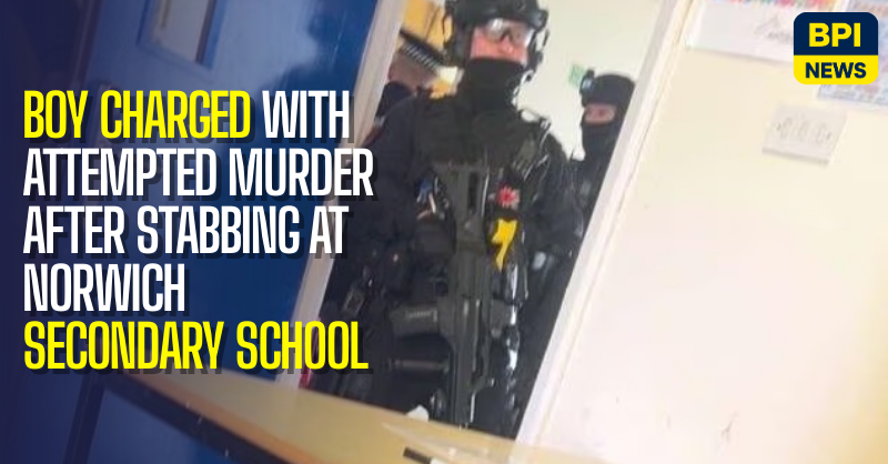 Norfolk Police said a 15-year-old boy had been arrested following the incident and later charged with attempted murder and possession of a knife on school premises. The suspect cannot be named for legal reasons due to his age.