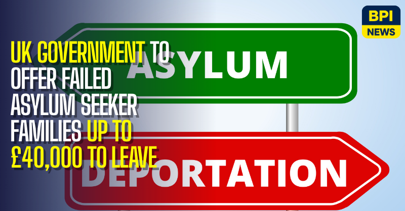 Families whose asylum claims have been rejected could be offered payments of up to £40,000 to leave the United Kingdom under a new pilot scheme announced by Home Secretary Shabana Mahmood.