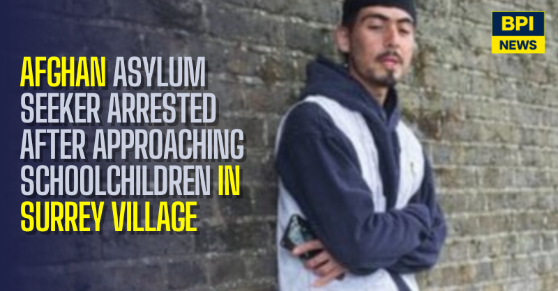 Police have arrested an Afghan asylum seeker after reports he approached schoolchildren near a primary school in a Surrey village.