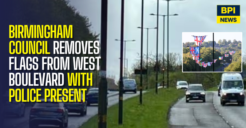 Birmingham City Council has removed dozens of national flags from a main road in the city, with officers carrying out the operation alongside police.
