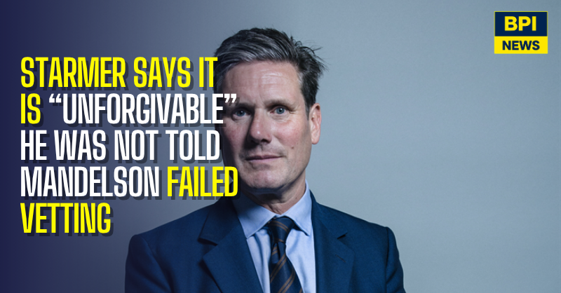 Keir Starmer has said it is “unforgivable” and “staggering” that he was not informed Peter Mandelson had failed security vetting, as questions mount over the handling of the appointment.