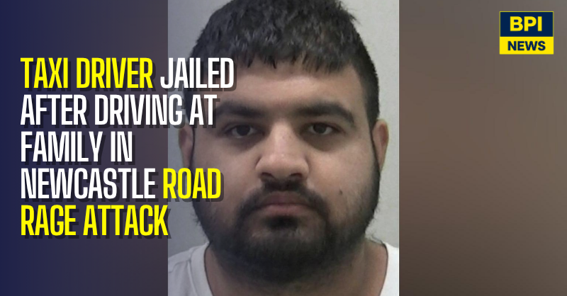 A taxi driver who deliberately drove at a family during a road rage incident in Newcastle has been jailed for nine years.